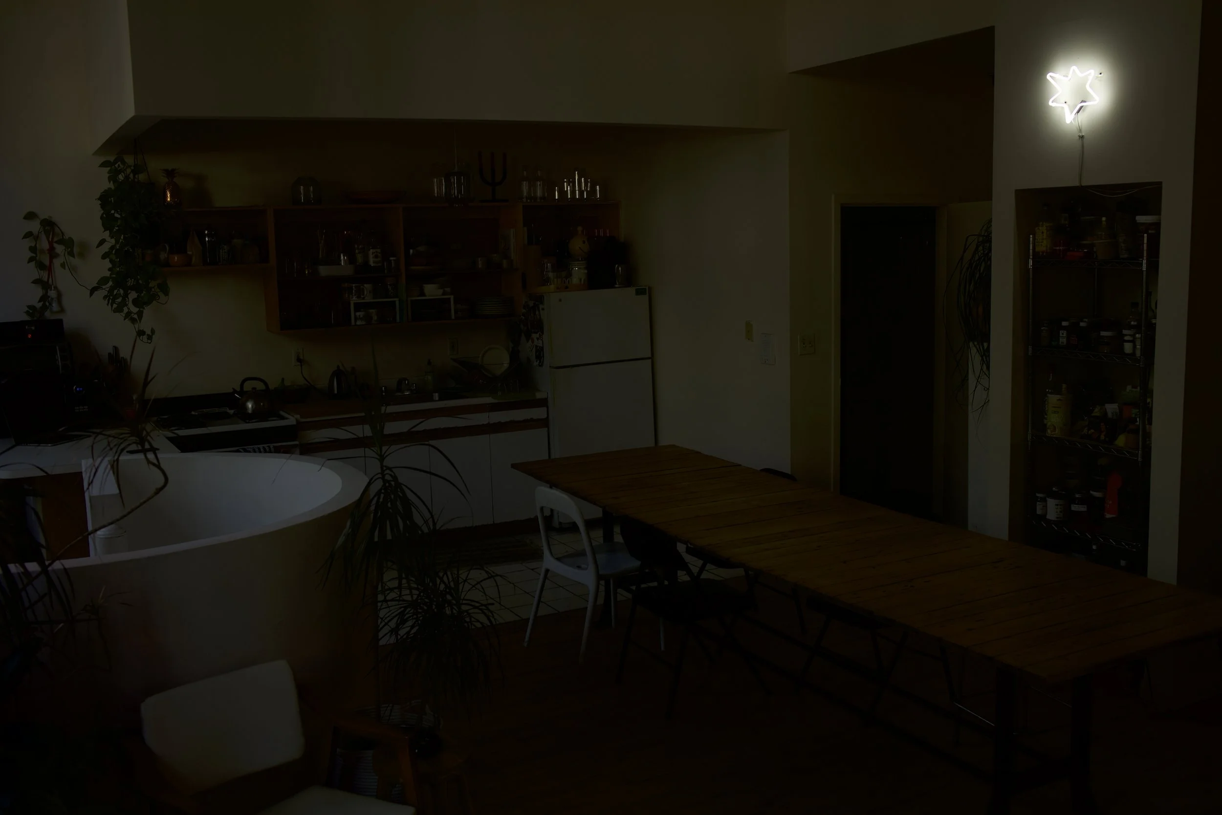 Drops from the Sun (2019) Neon, cable, transformer, 70 x 60"